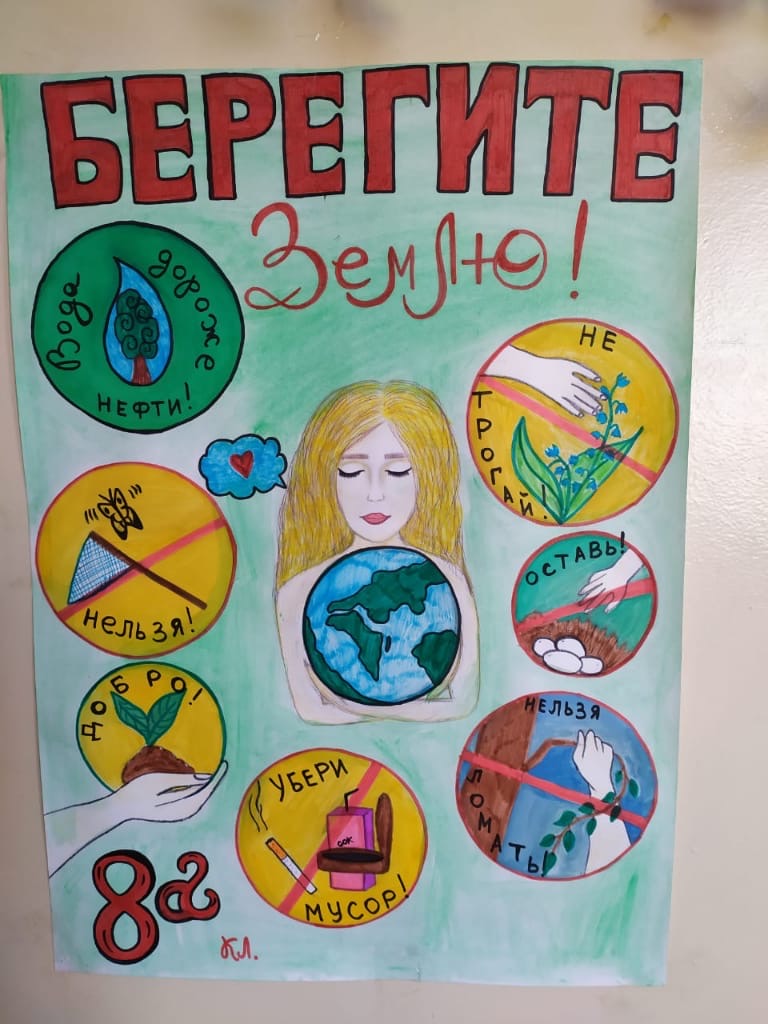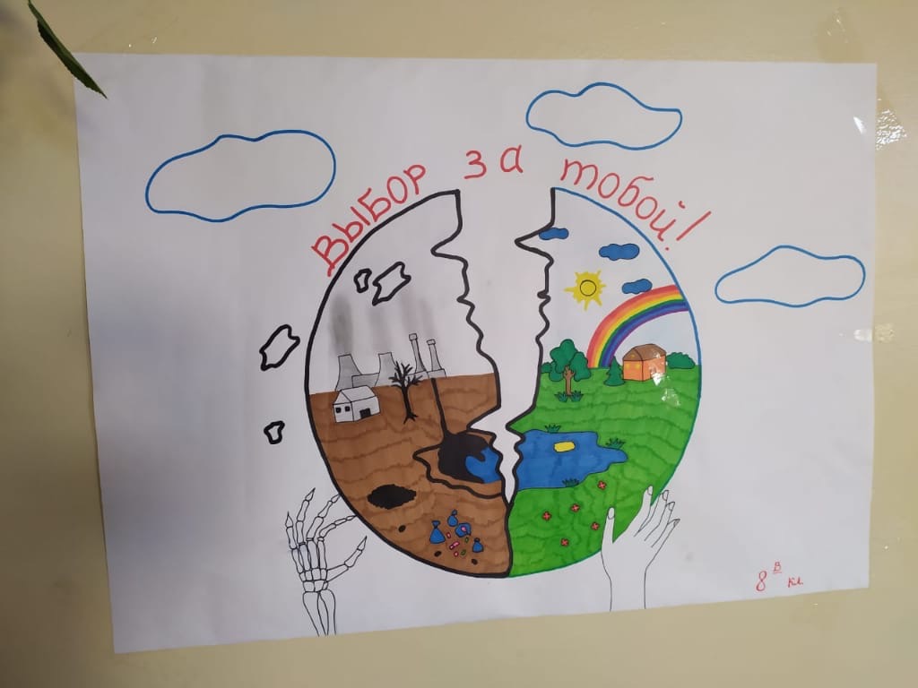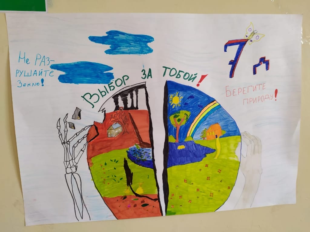 20.01.2020Согласно плану воспитательной работы на 3 неделе был проведен конкурс рисунков «Берегите Землю» среди 7-х и 8-х классов. Ребята приняли активное участие. Предоставленные работы были нарисованы и красками, и карандашами, и гуашью. Рисунки были яркими, красочными. Следует отметить, что своей оригинальностью отличился рисунок 8б класса (классный руководитель Гурманаева Л.Н.) .