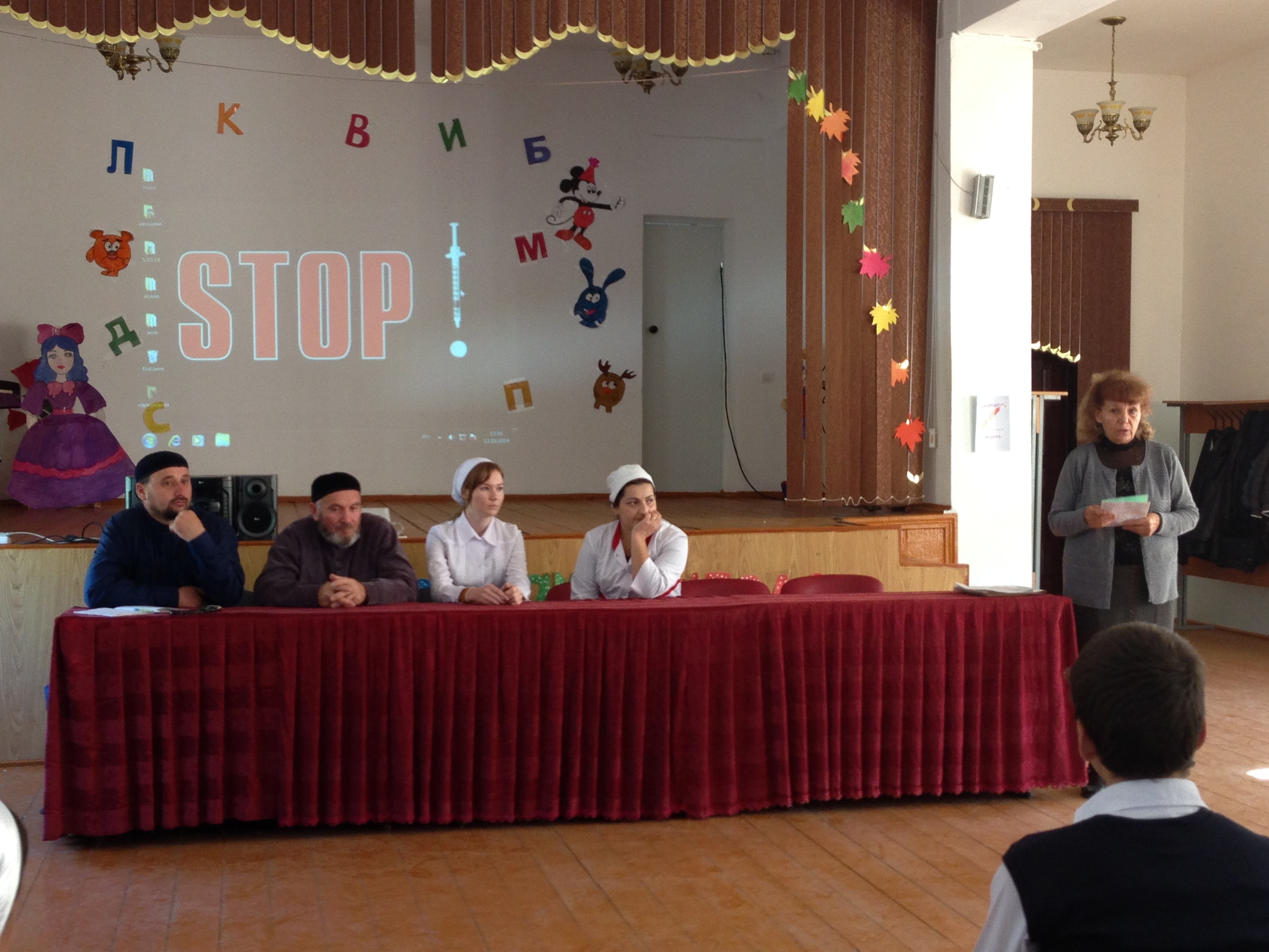 На данном мероприятии были гости с администрации ст. Червленная, которые провели беседу со старшеклассниками по теме "Скажи наркотикам-НЕТ!", дали им рекомендации и оставили брошюры в школьной библиотеке.Так же среди гостей были медсёстры, которые рассказали о признаках и последствиях наркомании.Учащиеся внимательно слушали и задавали дополнительные вопросы гостям.