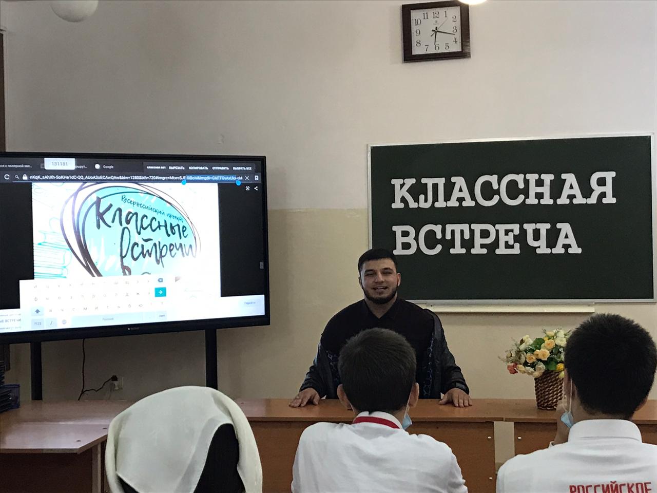 В рамках всероссийский проекта Российского Движения Школьников «Классные встречи» сегодня была проведена встреча активистов РДШ с заслуженным артистом ЧР , исполнителем нашидов Исой Эсамбаевым.