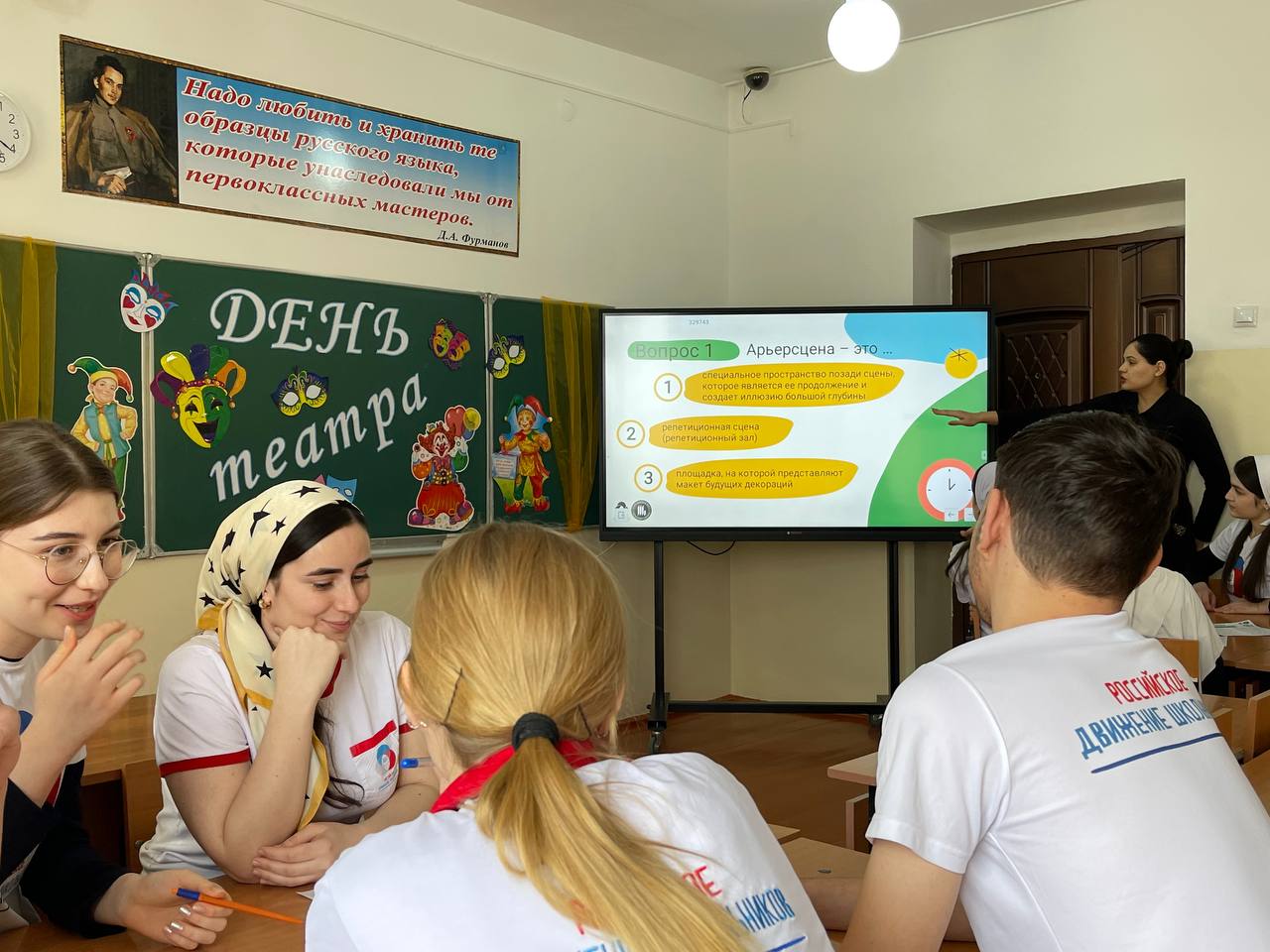 Интерактивный квиз, посвящённый Всемирному дню театра прошёл сегодня в нашей школе с обучающимися среднего звена. Две школьные команды прошли 3 тура заданий по тематике театральной деятельности. #РДШ#ДеньТеатраРДШ