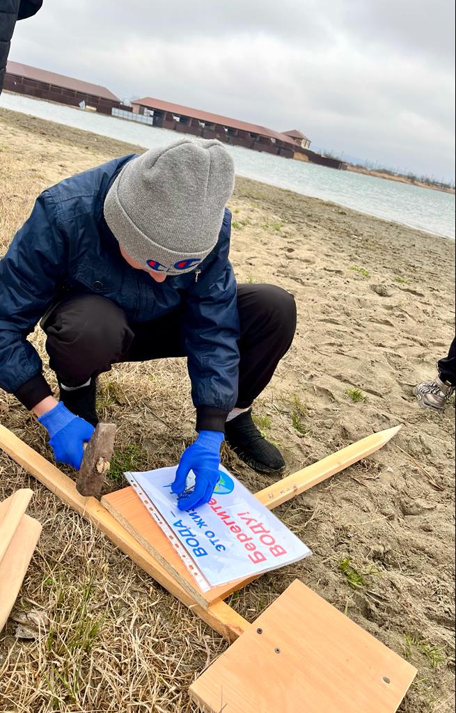 22.03.2022В целях привлечения внимания детей, молодёжи и педагогов в практической деятельности по сохранению водных объектов от загрязнения и исчезновения обучающимися 7 "Д" класса проведена акция "Вода - источник жизни ". Ребята занимались очисткой берегов местного озера от мусора и сухостоя, установили агитационные таблички с просьбой беречь окружающую среду.
