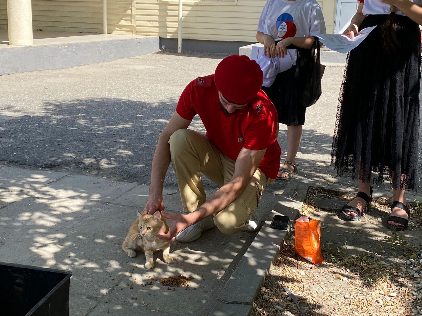 12.07.2022Акция «Покорми животное» под девизом «Добро не уходит на каникулы!» Доброта начинается с малого.Земля дает нам дом, дарует свои плоды. Благодаря этому мы можем жить, любить, развиваться. Как мы можем сказать ей «спасибо»? Своими добрыми делами, заботой о нашем общем доме и о тех живых существах, которые нас окружают. В нашей школе детям прививается сострадание к бездомным животным, постоянно напоминаем, что им помочь некому, кроме людей. Но доброта живет только тогда, когда она проявлена. В поступках, делах, внимании.В день Акции «Покормим животное» Юнармейцы с детьми беседовали о доброте, о взаимопомощи, о дружбе, о тех, кто нуждается в человеческой поддержке - птицах, растениях, животных.Другом можно стать не только для сверстника или взрослого человека, но и для животных.