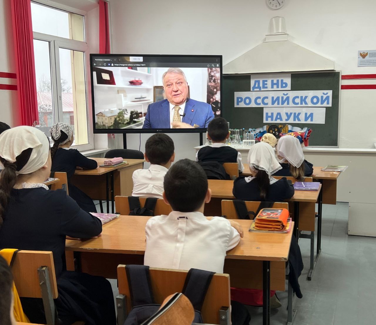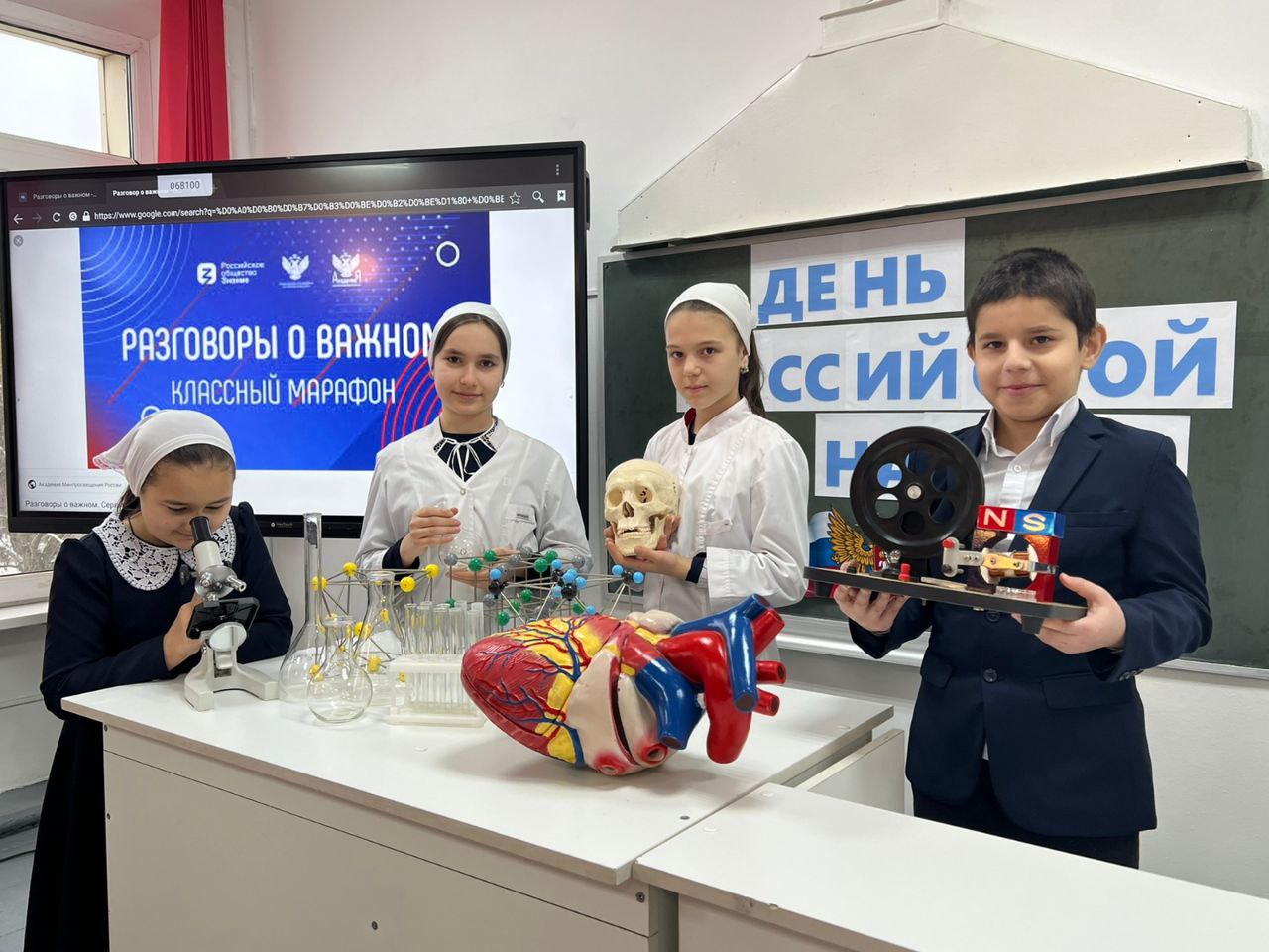 06.02.2023По традиции новая учебная неделя началась с торжественной церемонии поднятия государственного флага и исполнения гимна России Во время торжественной церемонии учашимися были вручены заслуженные награды, объявлена информация о предстоящих школьных событиях, планах и конкурсах. Сегодня внеурочное занятие «Разговоры о важном» было посвящено предстоящему государственному празднику - Дню Российской науки. Школьники узнали почему праздник отмечается 8 февраля, познакомились с биографией выдающихся русских учёных, обсудили научные открытия современных российских учёных и провели свои научные эксперименты