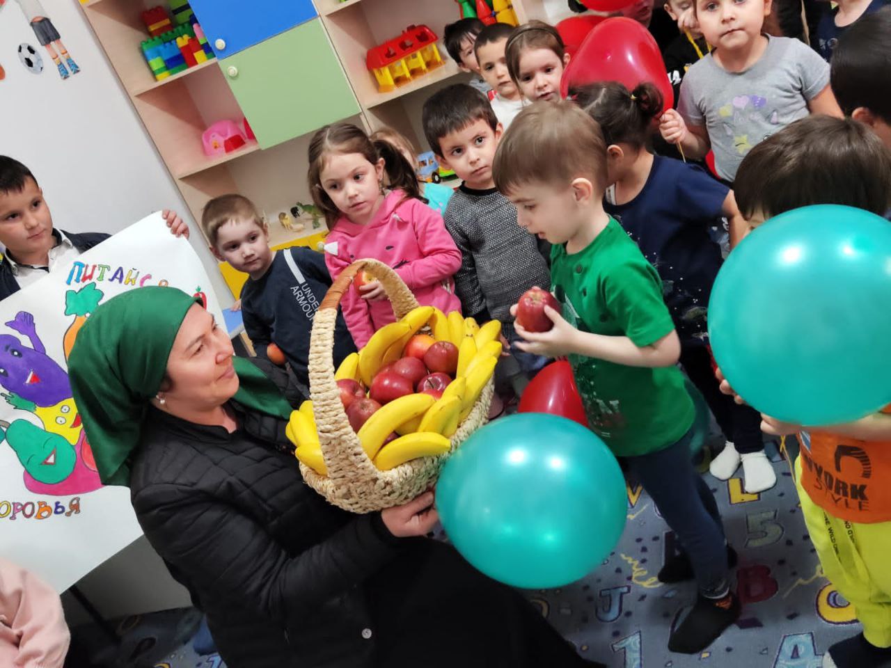 Ещё одну из самых Добрых акций провел 1 "В" класс (классный руководитель Тасуханова М. В. ). Наши первоклассники посетили детский сад "Чебурашка", рассказали малышам о правильном питании и угостили фруктами.