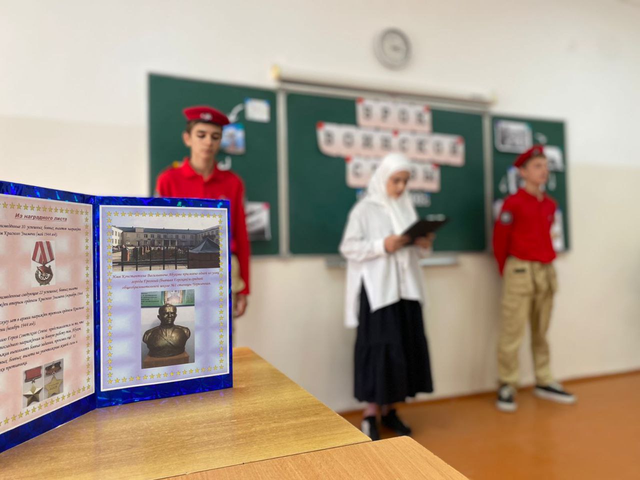 17.10.2023Активистами Юнармии проведена беседа о патриотизме: воспитывание у обучающихся любви к Родине, гордости на примере подвигов наших земляков. Абухов Константин Васильевич – командир 143-го гвардейского штурмового авиационного Львовского полка (8-я гвардейская штурмовая авиационная Полтавская Краснознамённая ордена Богдана Хмельницкого дивизия, 1-й гвардейский штурмовой авиационный Кировоградский Краснознамённый ордена Суворова корпус, 2-я воздушная армия, 1-й Украинский фронт), гвардии майор. Родился в 1904 году в казачьей станице Червлённая ныне Шелковского района Чеченской Республики в семье крестьянина. Русский. Призван в армию в 1922 году. В 1929 году окончил Качинскую военную авиационную школу лётчиков.Во время Великой Отечественной войны в действующей армии – с 19 декабря 1943 года.Прибыл на 2-й Украинский фронт, в 735-й (с 5 февраля 1944 года – 143-й гвардейский).Получил звание Герой Советского Союза. Посмертно.#Юнармия #ЮнармияЧР