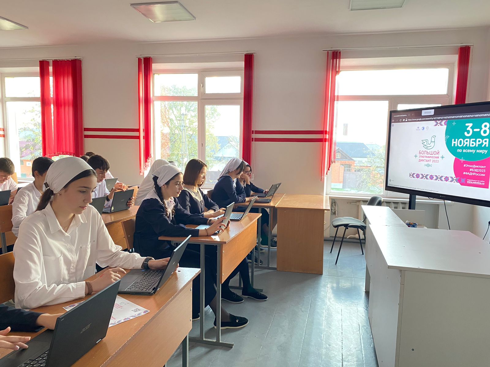 07.11.2023⚜ В нашей школе прошла международная акция «Большой этнографический диктант» ⚜С 3 ноября сотни тысяч участников из разных уголков России и мира присоединились к Большому этнографическому диктанту. Акция стартовала под лозунгом «Народов много — страна одна!».Несмотря на название «диктант», задания оформлены в виде теста. На их выполнение отводится 45 минут.
