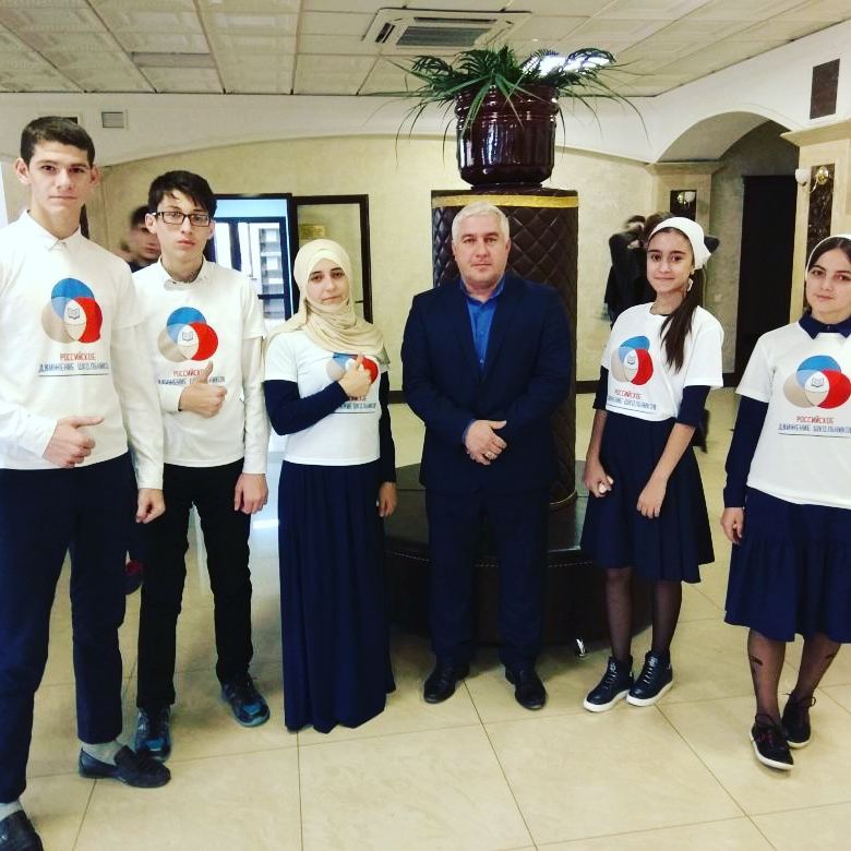 Учащиеся 10 класса во главе с классным руководителем Бурзахановым А.И. на квесте "Я знаю РДШ"
