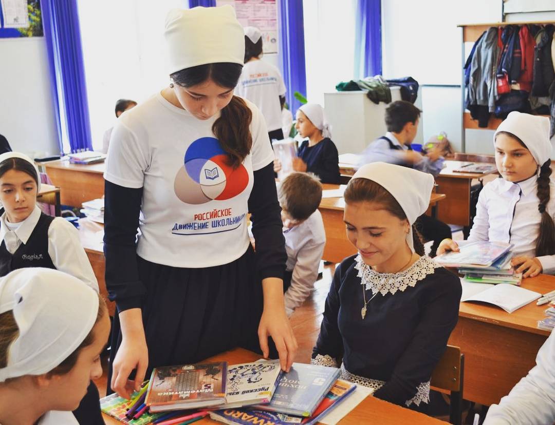 Активисты РДШ во главе с заведующей библиотеки Сычевой Е.Н. проводят рейд по сохранности учебников