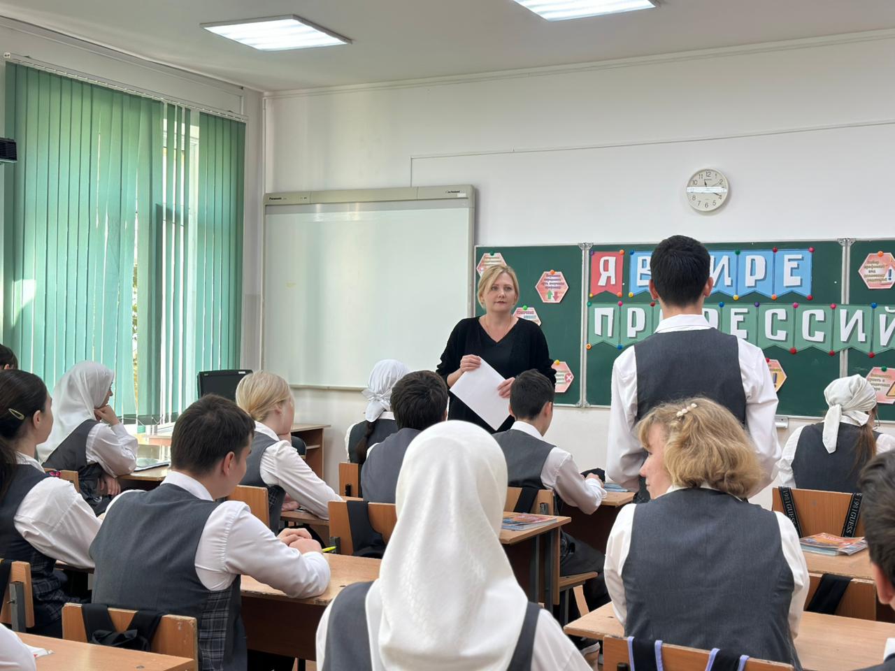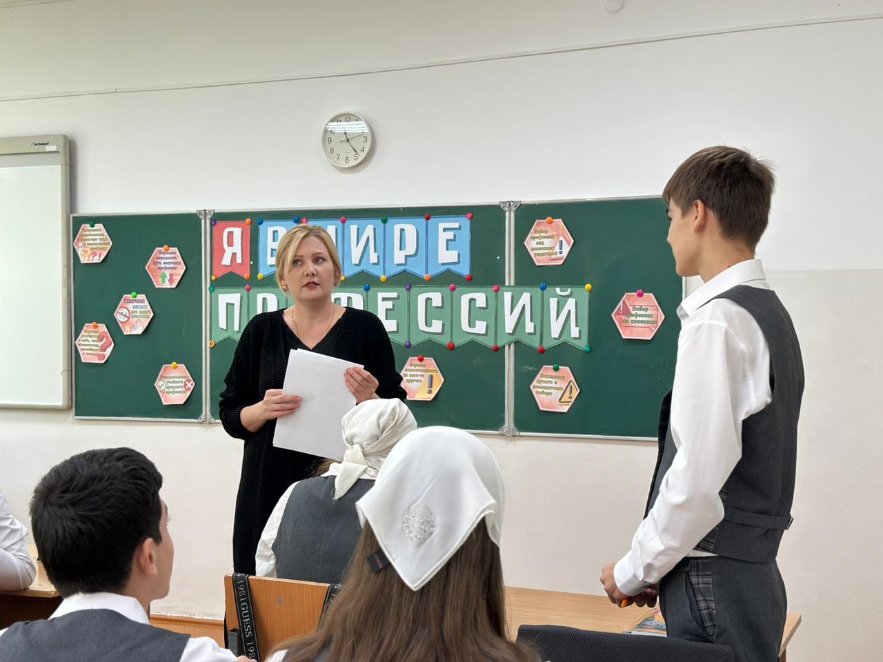 11.09.2025МБОУ "Червленская СОШ 1 им. К. В. Абухова".11 сентября с учащимися 9 "б" класса педагогом-психологом была проведена профориентационная беседа на тему:"Я в мире профессий".Цель беседы:расширить представление подростков о различных профессиях,сформировать позитивное отношение к труду,побудить учащихся к поиску информации о профессиях,к осознанному профессиональному выбору.