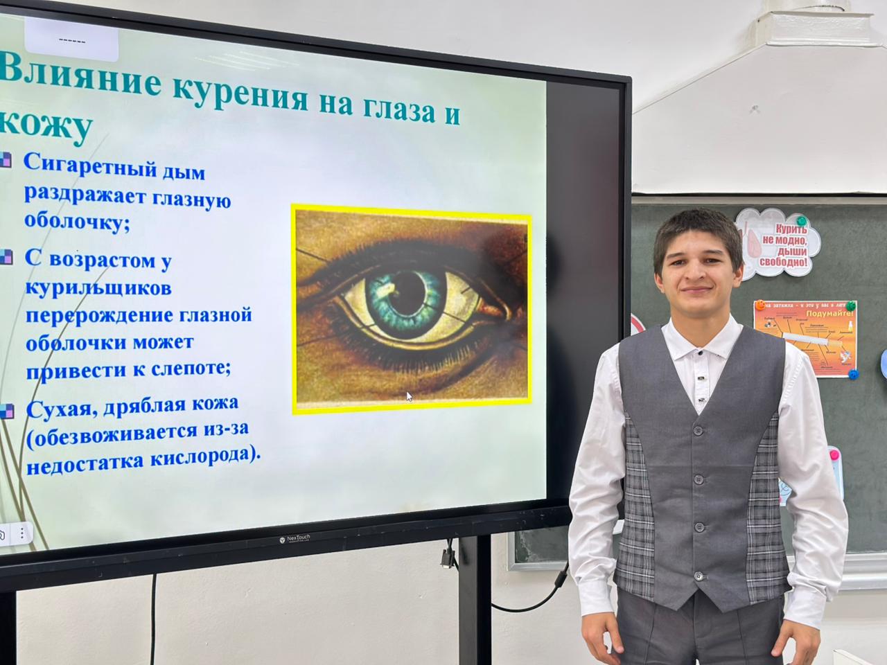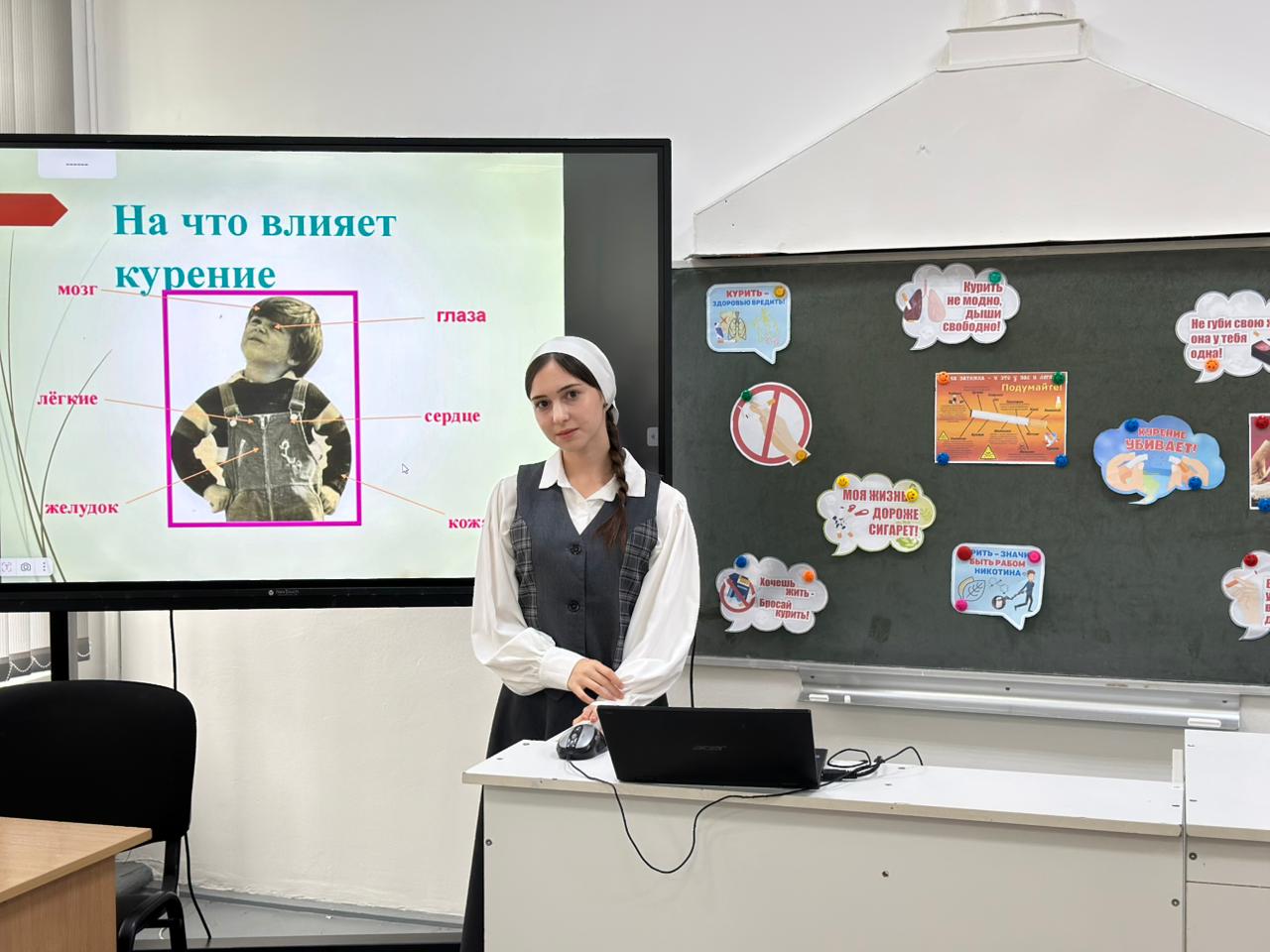 15.10.2025МБОУ "Червленская СОШ № 1 им. К. В. Абухова".С целью формирования отрицательного отношения к курению и воспитания у учащихся ответственности за свое здоровье,бережного отношения к нему,как к главной ценности человека,с учащимися 8 "А" класса педагогом-психологомбыла проведена профилактическая беседа: "Курить - здоровью вредить".
