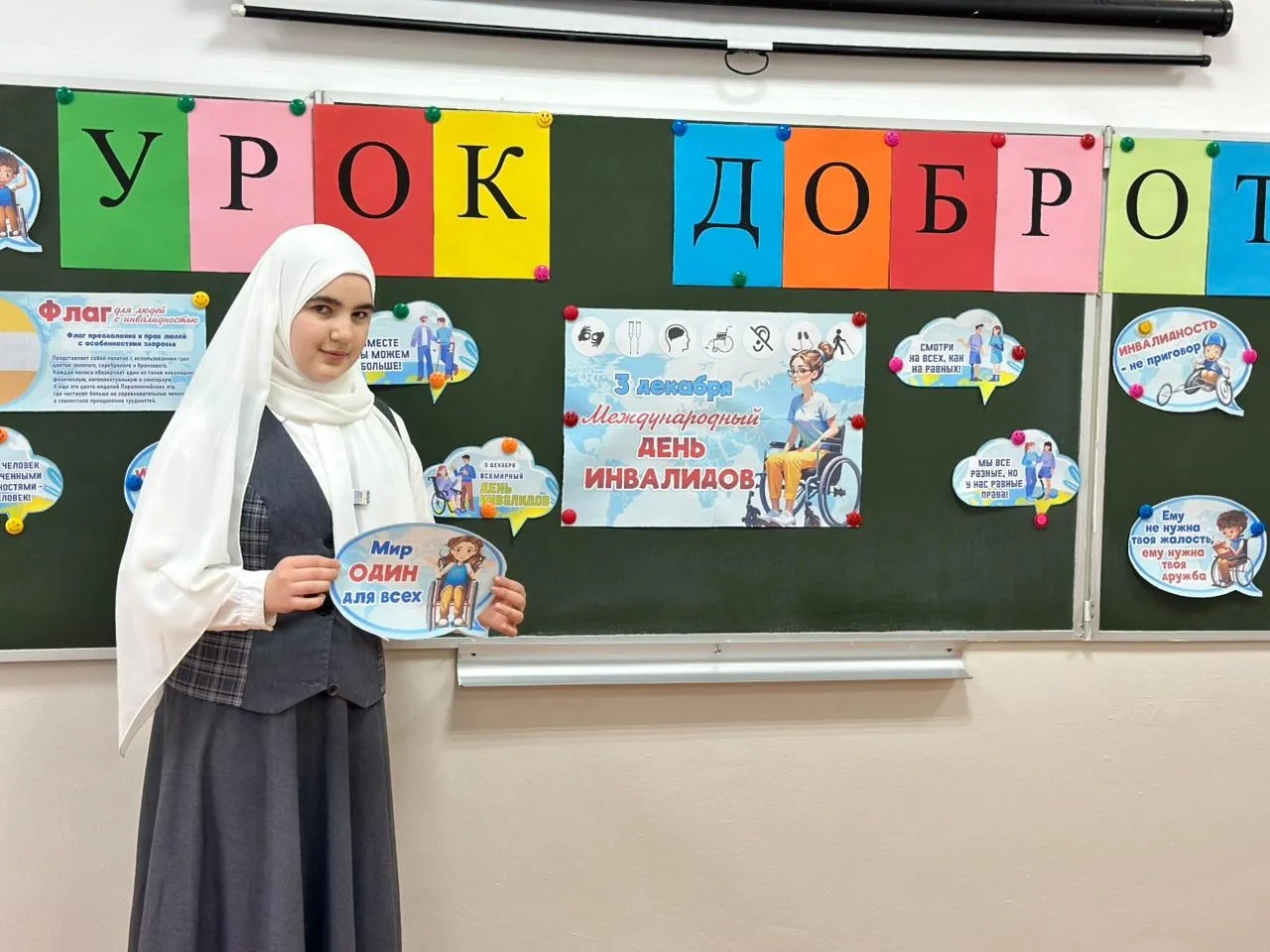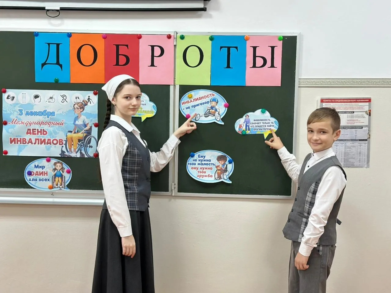 01.12.2025МБОУ "Червленская СОШ № 1 им. К. В. Абухова".3 декабря-Международный день инвалидов. В связи с этой датой с учащимися 6 "В" класса педагог-психолог провела Урок доброты:"Мир без границ-психология инклюзии и эмпатии".Цель урока: формирование позитивных,уважительных отношений школьников к людям с инвалидностью,понимание того, что такие люди живут рядом с ними и являются полноценными членамии общества.