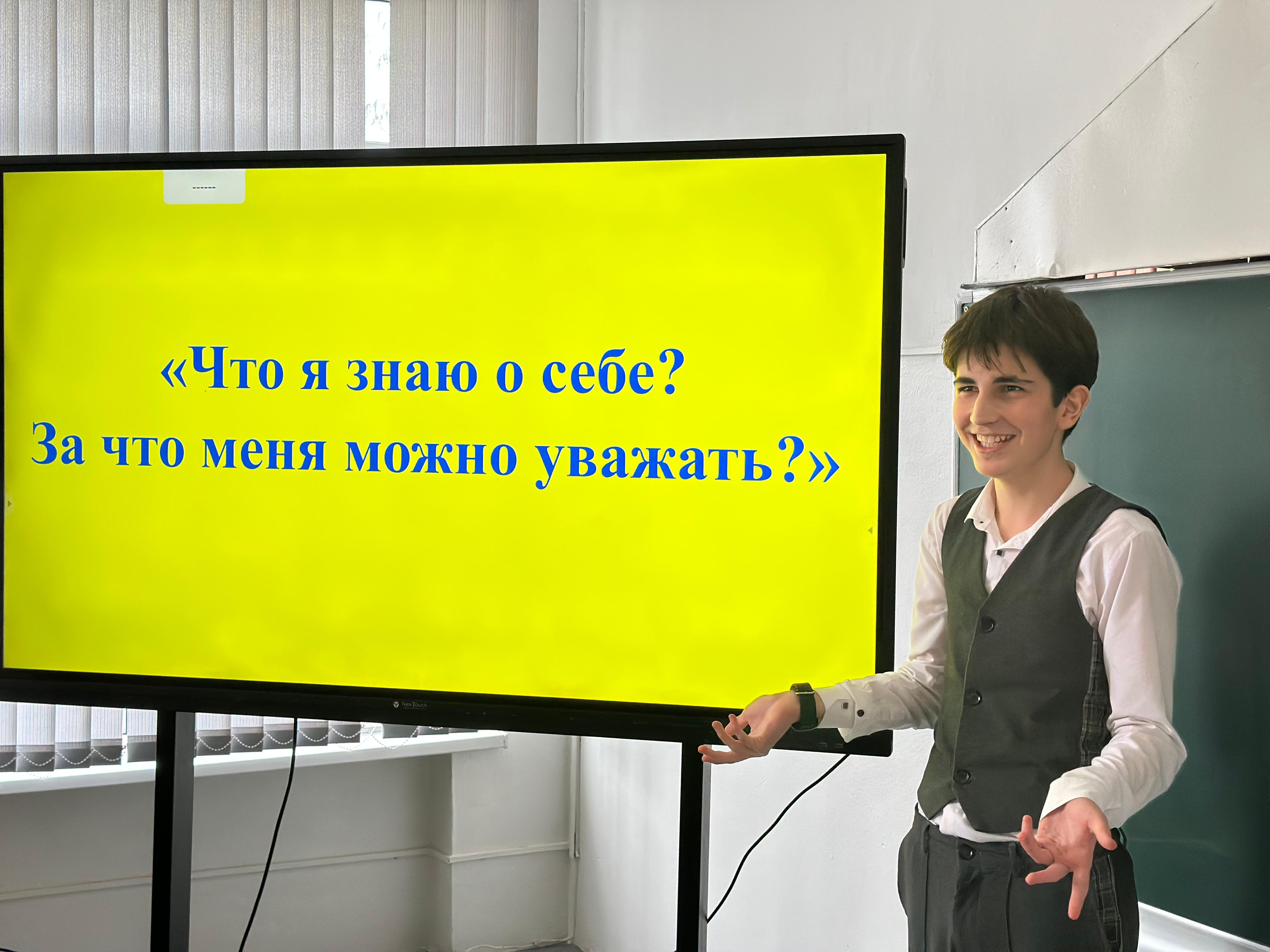22.12.2025МБОУ "Червленская СОШ №1 им. К. В. Абухова". "Что я знаю о себе? За что меня можно уважать?". С целью оказания помощи учащимся в исследовании своих интересов, способностей,сильных сторон и личностных качеств,в 8 "А" классе педагог-психолог провела беседу на тему:"Что я знаю о себе? За что меня можно уважать?". В ходе беседы учащиеся были уведомлены о важности умения преподнести себя,и с уважением относиться к другим,чтобы они уважали в ответ.