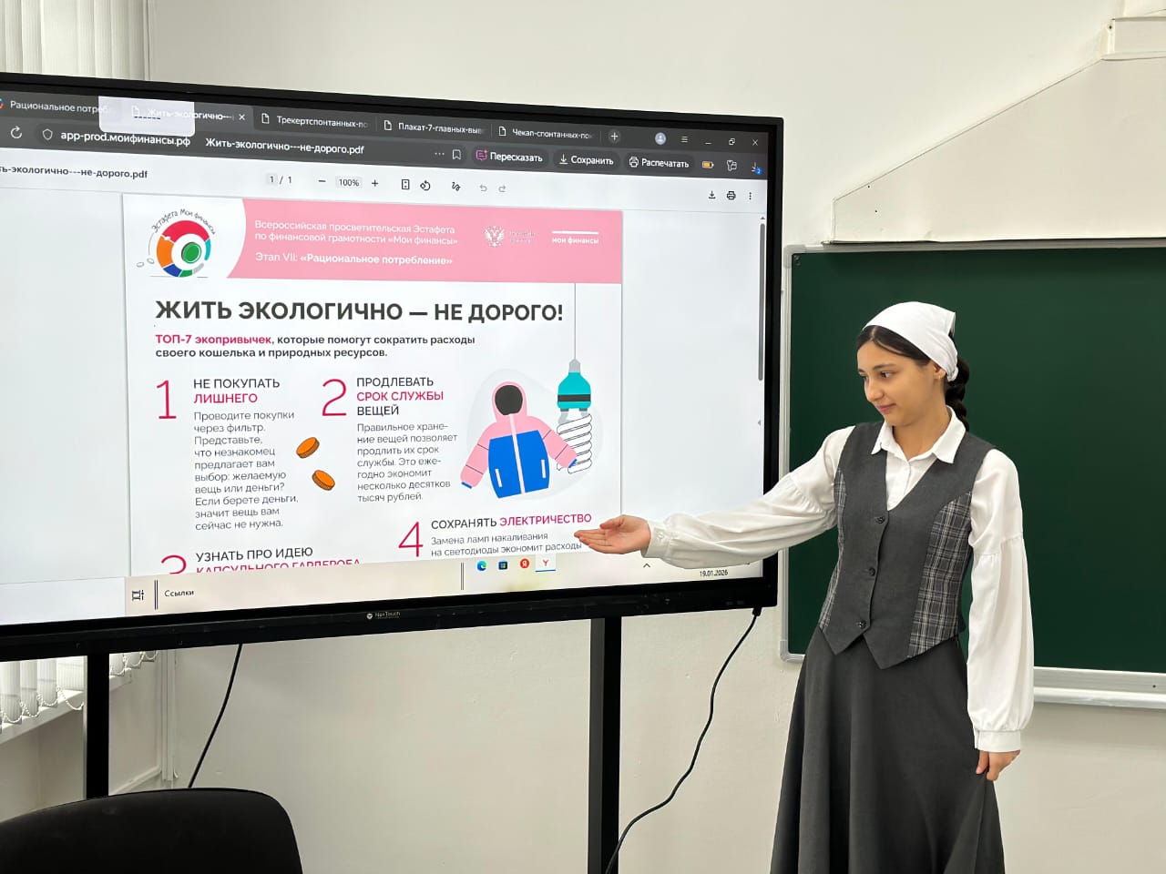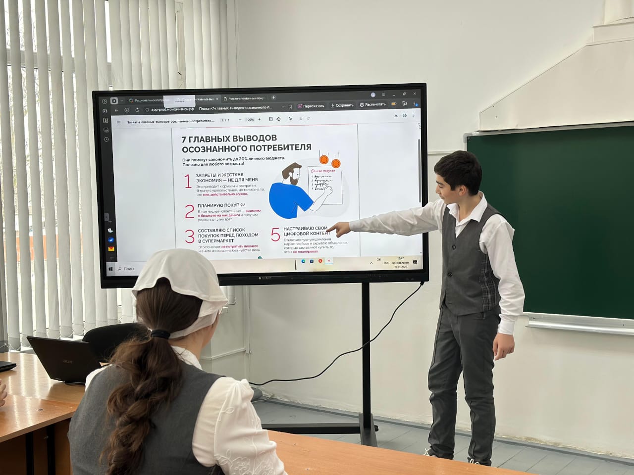 19 января в 8 "А" классе прошёл урок по финансовой грамотности на тему:"Что такое рациональное потребление?"Ребята выяснили,что это осознанный и экономный подход к использованию ресурсов: денег, времени, энергии.Цель рационального потребления— получать максимальную пользу при минимальных затратах, избегая ненужных покупок и расточительства.Почему это важно? Рациональное потребление помогает сберегать деньги, защищать окружающую среду и улучшать качество жизни. К примеру, выбирая товары с меньшим экологическим следом или ограничивая покупки ненужных вещей, мы делаем вклад в сохранение природы.Как научиться потреблять рационально?1. Планировать покупки, составляя список необходимых вещей. 2. Сравнивать цены и качество товаров. 3. Обращать внимание на качество, а не только на цену. 4. Отказаться от импульсивных покупок и приобретать товары по действительно важной потребности. 5. Использовать ресурсы разумно: выключать электроприборы, экономить воду и энергию.Итак, рациональное потребление — это забота о себе, о семье и о планете. Каждый из нас может внести свой вклад, делая умные и осознанные выборы каждый день!