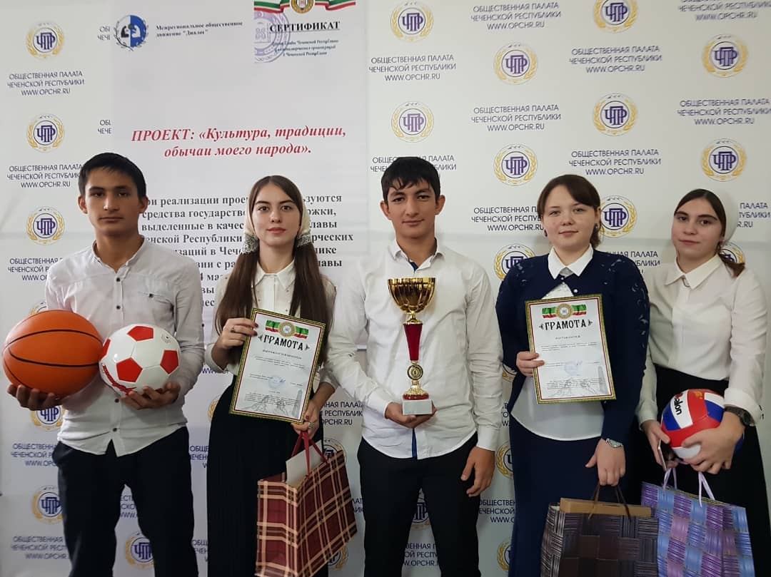 14.11.2018Сегодня наши ребята побывали в Общественной палате ЧР, где их наградили за призовые места в конкурсе сочинений "Культура, традиции, обычаи моего народа ". В этом же зале состоялась викторина "Вместе мы - страна Россия"в рамках проекта "Культура, традиции, обычаи моего народа". Команда "Молния", состоящая из обучающихся 10х классов заняла 1 место. Мы поздравляем ребят с такими победами и хотим сказать огромное спасибо Аюбовой Лайле за такое внимание и поддержку.